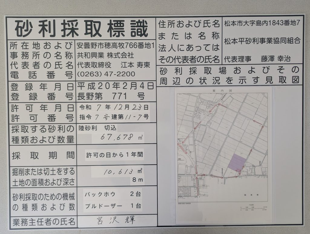 砂利採取標識(安曇野市三郷温1591-1他4筆)